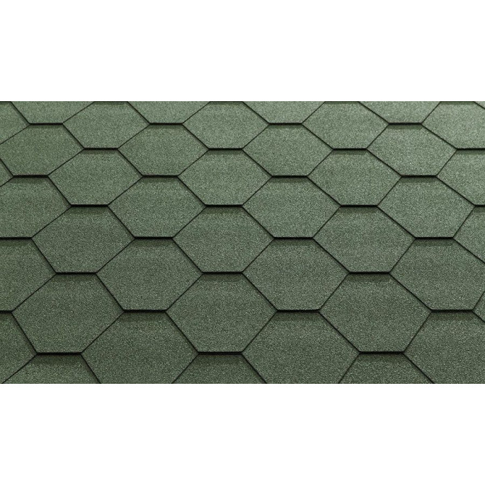 Битумная черепица Katepal KL Зеленый - это серия битумной черепицы с однотонным цветом и формой нарезки в виде пчелиных сот.