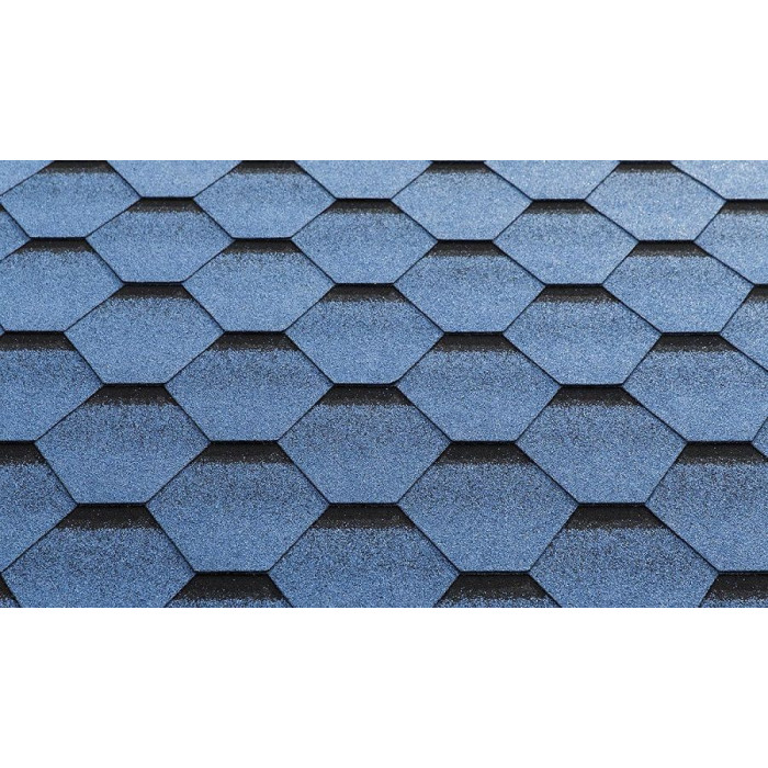 Битумная черепица Katepal Katrilli Синий - это серия битумной черепицы с формой нарезки в виде пчелиных сот. Объем крыши достигается затемнением верхней части соты.