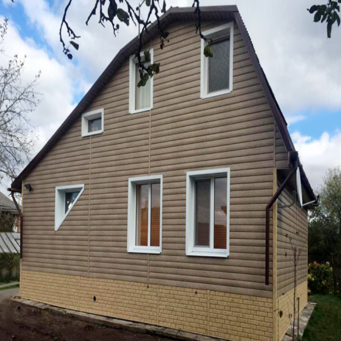 Сайдинг виниловый Ю-Пласт Золотой (Беларусь) изготовлен из ПВХ под природный дизайн, данный материал не подвержен гниению и коррозии, не выделяет вредных веществ и безопасен для окружающей среды, а также устойчив к перепадам температур (+ 60С - 50С). Высокий уровень пожаробезопасности. Невосприимчив к атмосферным явлениям (не выгорает на солнце, не трескается на морозе, не расслаивается от дождя, не боится грибка и насекомых).