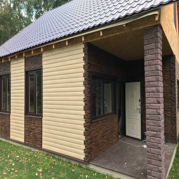 Сайдинг виниловый Ю-Пласт Янтарный (Беларусь) изготовлен из ПВХ с натуральной фактурой, данный материал не подвержен гниению и коррозии, не выделяет вредных веществ и безопасен для окружающей среды, а также устойчив к перепадам температур (+ 60С - 50С). Высокий уровень пожаробезопасности. Невосприимчив к атмосферным явлениям (не выгорает на солнце, не трескается на морозе, не расслаивается от дождя, не боится грибка и насекомых).