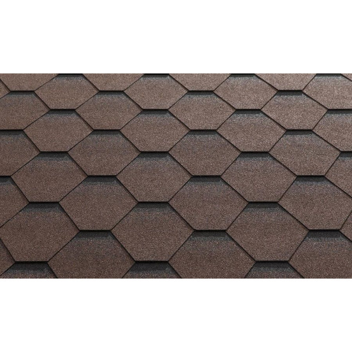Бітумна черепиця Katepal Katrilli Верес - це серія бітумної черепиці з формою нарізки у вигляді бджолиних сот. Обсяг даху досягається затемненням верхній частині стільника.