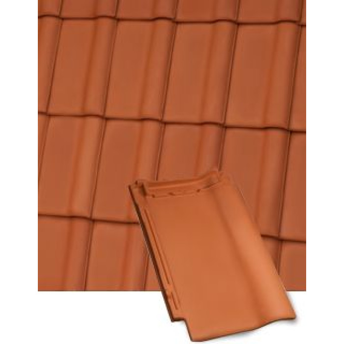 Черепиця Roben Piemont Червона натуральна (terracotta) - це відносно нова форма черепиці. У форми Roben Piemont застосовують спеціальні замки, що забезпечують відмінну міцність покрівельного покриття і дозволяють варіювати відстань нахлеста черепиці, що дуже зручно при реконструкції старої покрівлі. Також цей замок дозволяє укладати черепицю на даху з маленьким ухилом.