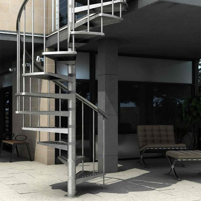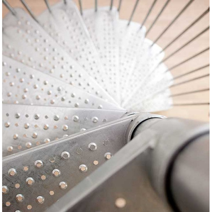 Винтовая лестница Долле Гарденспин изготовлена из огнеупорной стали и характеризуется повышенной износостойкостью. Ступени оснащены рельефной перфорацией, что предотвращает скольжение при передвижении и гарантирует безопасность эксплуатации. Спиральные или винтовые лестницы универсальны и могут использоваться как внутри помещений, так и снаружи на улице. Ширина ступеней рассчитана на комфортабельный спуск и подъем. Шаг ступеней 20,5-23,5 см, толщина - 3 см, 4 см.